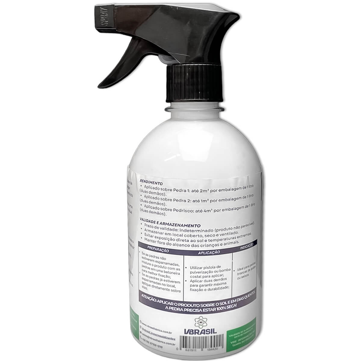 A Cola Pedra VBrasil 500ml é um selante líquido inovador à base de nanotecnologia, desenvolvido para fixar, proteger e realçar pedras decorativas em jardins e paisagismos. Sua fórmula especial cria uma película transparente e resistente, mantendo o aspecto natural das pedras e evitando deslocamentos causados por chuva, vento ou pisoteio. Com alto rendimento e fácil aplicação, o produto proporciona fixação duradoura, além de ser hidrofugante, ecológico, não tóxico e evitar a formação de mofo, garantindo beleza e proteção prolongada ao ambiente externo.