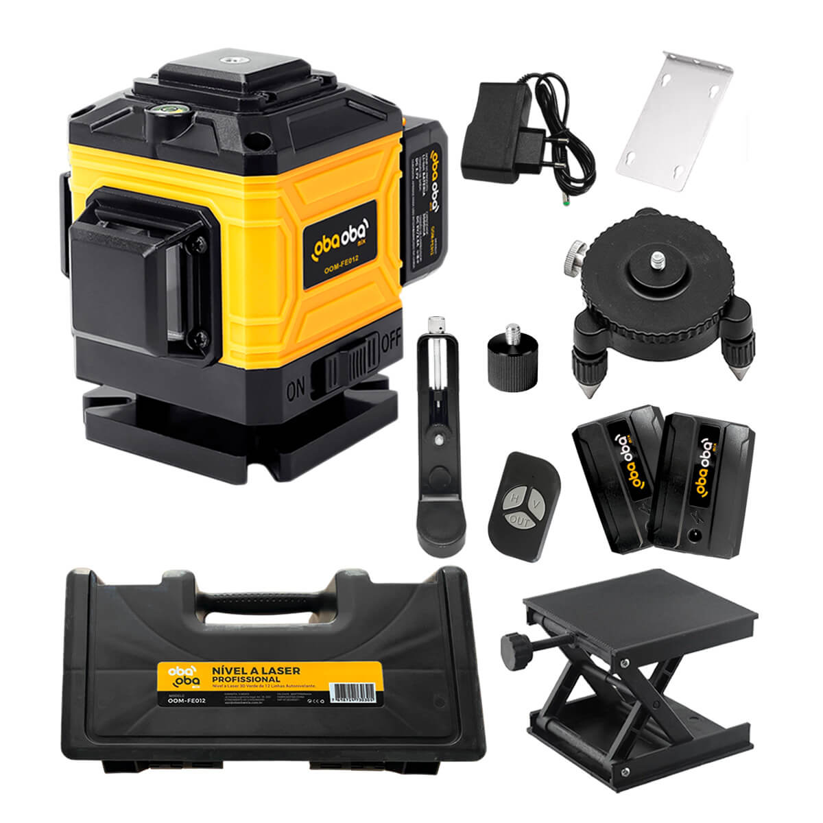 O Nível Laser Profissional 3D com 12 Linhas é a ferramenta ideal para quem busca precisão, praticidade e alto desempenho em projetos de nivelamento. Com tecnologia de autonivelamento por pêndulo, linhas verdes visíveis e emissão de 360°, oferece medições confiáveis em diversas aplicações, como instalação de pisos, tetos, paredes, azulejos e quadros. Equipado com baterias recarregáveis de 2400mAh, controle remoto de longo alcance e carregador bivolt, o equipamento proporciona praticidade e autonomia para o uso profissional. Conta ainda com alerta sonoro para desnivelamento e botões de controle individuais para linhas verticais e horizontais.