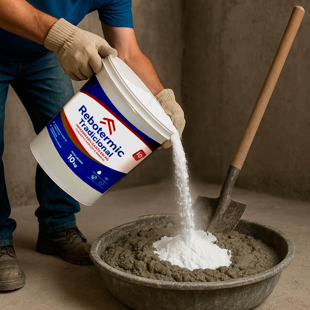 O Rebotermic é um aditivo impermeabilizante em pó mineral de alta performance, desenvolvido com nanotecnologia exclusiva para proporcionar hidrofugação total e bloqueio do sistema capilar do concreto e do reboco. Sua fórmula inovadora atua de forma eficaz na impermeabilização por capilaridade, impedindo a ascensão da umidade e garantindo maior durabilidade, resistência e proteção para obras residenciais, comerciais e industriais. Este aditivo é ideal para substituir o uso de cal e liga, proporcionando concretos e rebocos respiráveis, com excelente aderência e acabamento profissional.