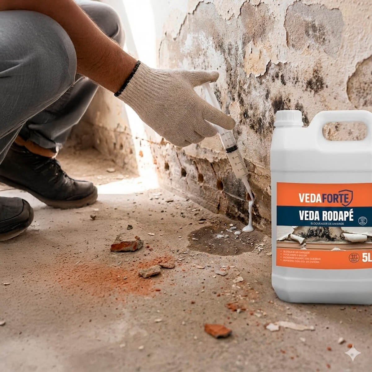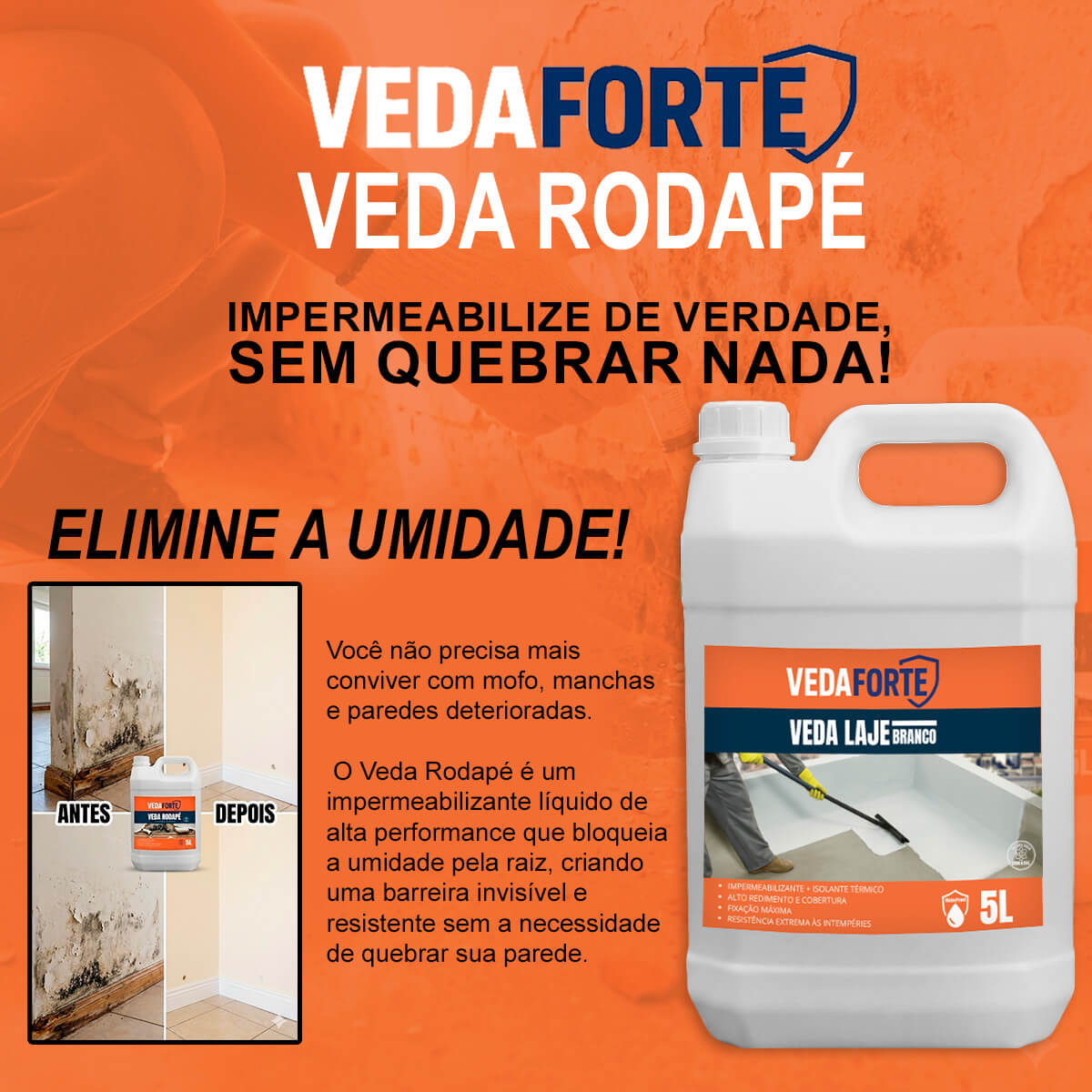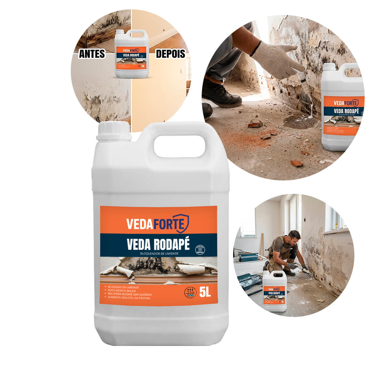 O Veda Rodapé é um impermeabilizante líquido de última geração, desenvolvido para eliminar a umidade ascendente por capilaridade em paredes de alvenaria, uma das principais causas de mofo, bolor e deterioração dos rodapés. Aplicado por injeção direta na parede, o produto cria uma barreira química eficaz que bloqueia a subida da umidade, permitindo a recuperação do rodapé sem necessidade de quebrar paredes. Além de evitar o surgimento de mofo e bolor, o Veda Rodapé aumenta significativamente a vida útil da pintura e dos revestimentos. Ideal para ambientes residenciais, comerciais e industriais, é uma solução prática, durável e profissional para problemas crônicos de umidade.